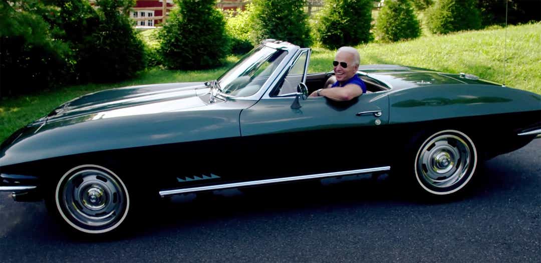 The spot, called "America is Making a Comeback," is paid for by the Biden for President campaign. In it, Biden gets behind the wheel of his classic C2 Corvette convertible showing off his driving skills.